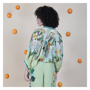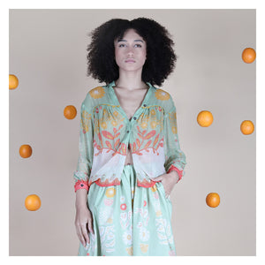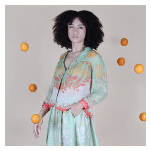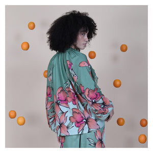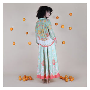 Designed for versatility, the OVIDIA COVER UP features a flowing, one-size-fit, long sleeves, and a front-open design to elevate your look. Made from soft viscose velvet with a floral print, it layers easily over both casual and dressy looks. Pair it with the HASMIK WIDELEG PANTS for a coordinated outfit that transitions seamlessly from day to night.